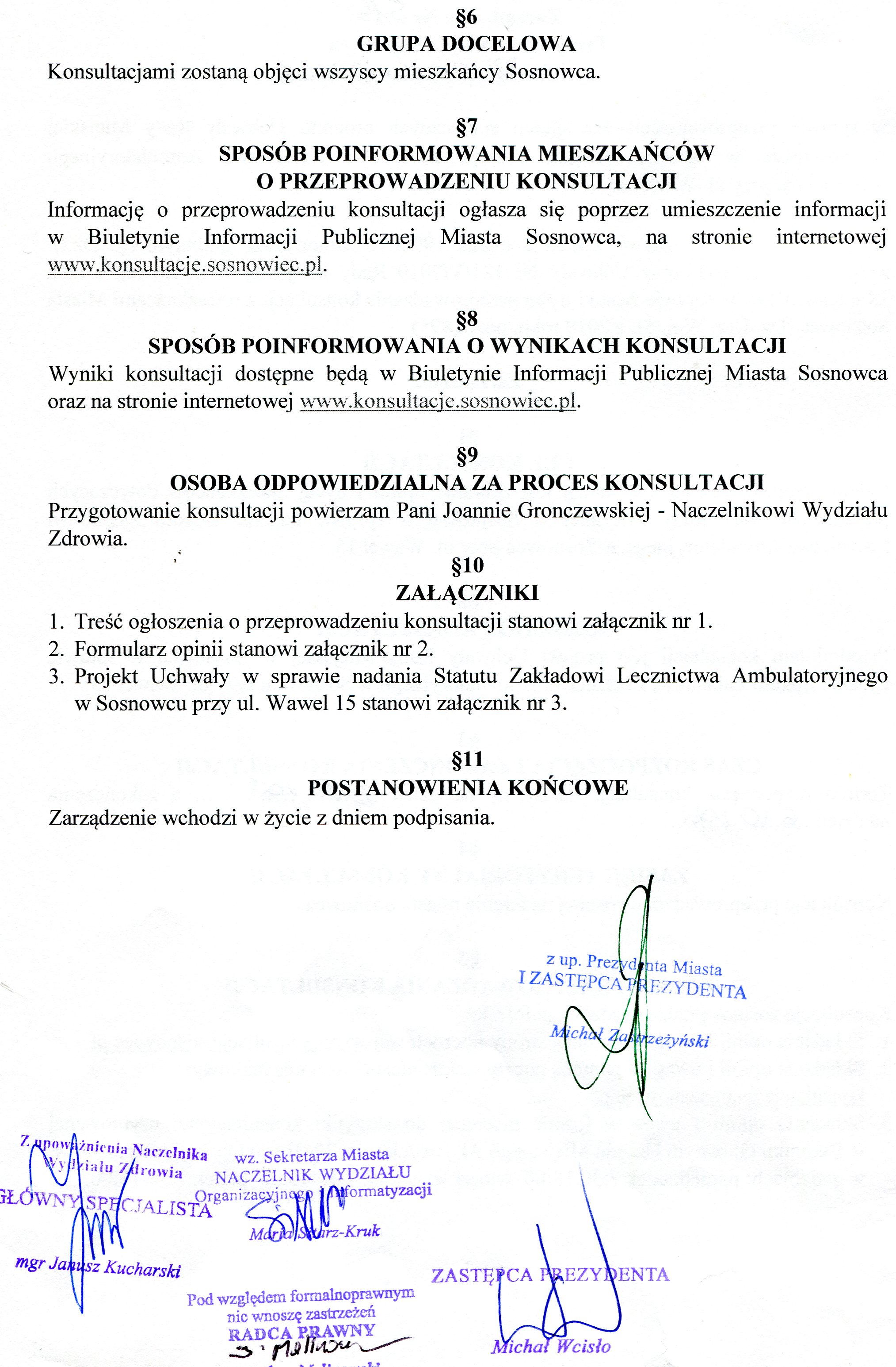 Przeprowadzenie konsultacji społecznych projektu Uchwały Rady Miejskiej w Sosnowcu w sprawie nadania Statutu Zakładowi Lecznictwa Ambulatoryjnego w Sosnowcu przy ul. Wawel 15.